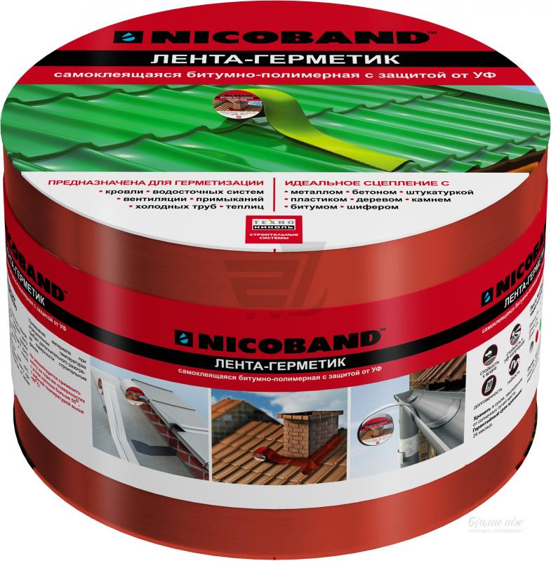 Монтажную ленту Nicoband используют для герметизации наружных швов. Он способен прочно соединить изоляционную пленку со штукатуркой, деревом, металлом, кровельным покрытием и бетоном. Производитель дает гарантию герметичного соединения на протяжении 10 лет.