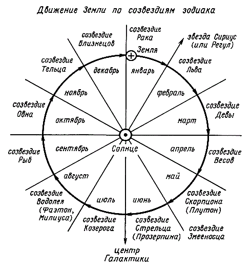 Рис. 5.2. Движение Земли по созвездиям зодиака